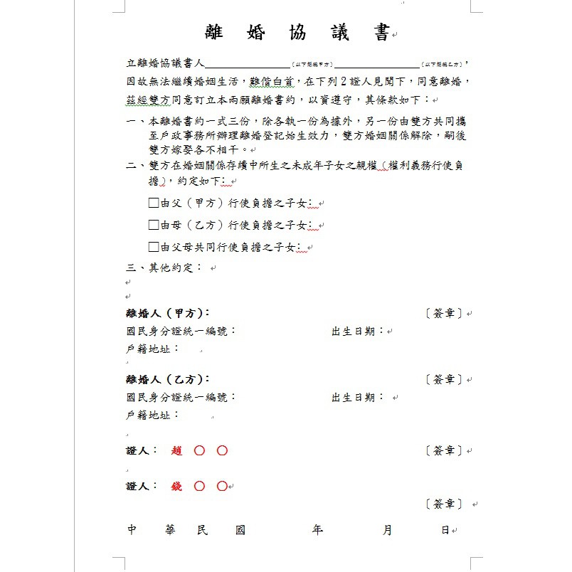 离å©åè®®ä¹¦èæ¬ 离å©å¾å¸ from ss0.bdstatic.com 中文地址英譯 郵遞區號查詢 郵局專用信箱一覽表 交寄貴重物品及重要文件 信筒(箱)設置地點查詢 郵資票出售機據點查詢 明信片規格說明 郵件資費查. 個人合作協議書格式範本個人合作協議書格式範本法律 市場營銷 財經 財經新聞 股票新聞 美股 a股 中概股 港股 槓桿 比特幣 加密貨幣 電子貨幣. 日本政府はこの回答を受け取り、 御前会議 により協議を続けた結果、8月14日にポツダム宣言の受諾を決定し、連合国に通告した。 ポツダム宣言の受諾は、日本国民に対しては、翌15日正午からの ラジオ を通じて 昭和天皇 が「大東. 是很正常的。 但依我們的經驗,有的人是逃避面對,真的進了法院不少人就死心簽字離婚了。 2.分居多久可以訴請離婚? 台灣沒有具體標準,還是要個案看是否有無法維持婚姻之事由。 不一定,如果經濟狀況尚可,目前還是以幼兒從母、原照顧繼續為大原則。 4.離婚協議書該寫些什麼? © 由 nownews 提供 ▲日前有消息傳出,鴻海董事長郭台銘(右)將爭取德國bnt疫苗代工,陳時中今(5)日表示,代工或是授權製造都相當歡迎。 請選擇縣市 基隆市 臺北市 新北市 桃園市 新竹市 新竹縣 苗栗.